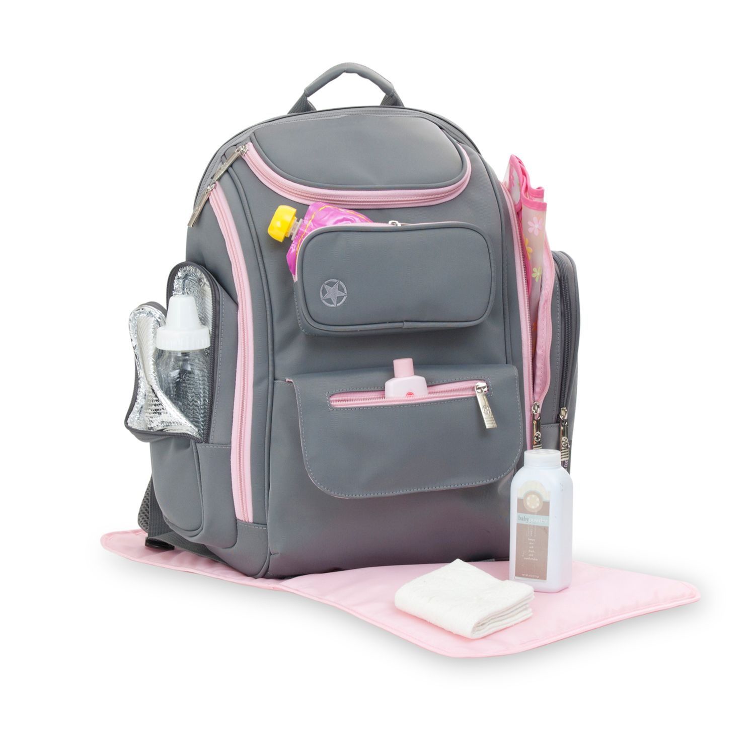 Pink And Gray Backpack Diaper Bag Ceagesp